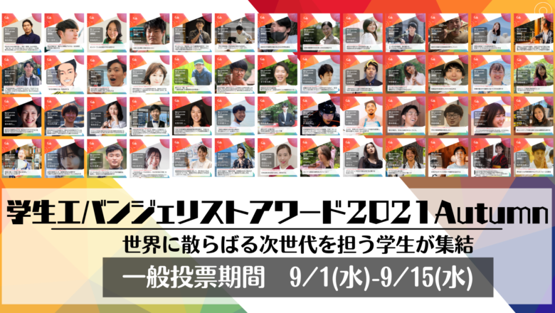 海外大学に通う学生を含む全国から60名の有望な学生がエントリーしたアワード、約1ヶ月の審査を経てファイナリストを決定。一般投票を通して、出場者それぞれが応援の輪を広げます! この度、NPO法人学生ネットワークWAN(以下、WAN)では、10年後の未来を創る次世代リーダーを発掘・育成する「学生エバンジェリストアワード 2021 Autumn 」の一般投票(9月1日〜9月15日)を開催致します。 本アワードは、7月15日から1ヶ月間エントリーを受け付け、スポーツ選手として活躍する学生や、環境問題に取