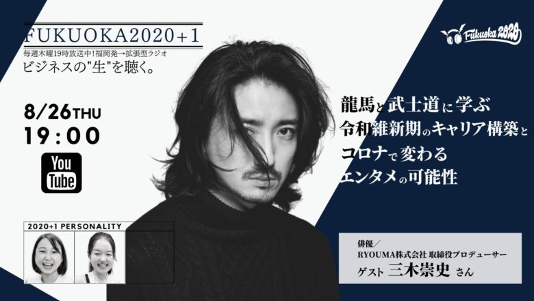 NPO法人学生ネットワークWANが、ビシップ株式会社と共同でお送りしているFMラジオ「FUKUOKA2020」。 今回のゲストは‥ 8/26(木)、第152回目の放送は、俳優/RYOUMA株式会社 取締役プロデューサー 三木崇史さんと大学生パーソナリティ、りよ、のあが対談しました。 テーマは、『 龍馬と武士道に学ぶ 令和維新期のキャリア構築と コロナで変わるエンタメの可能性 』。 配信の様子はこちらからご覧いただけます。 FUKUOKA2020とは? 毎週木曜日19時から生配信!〜ビジネスの&