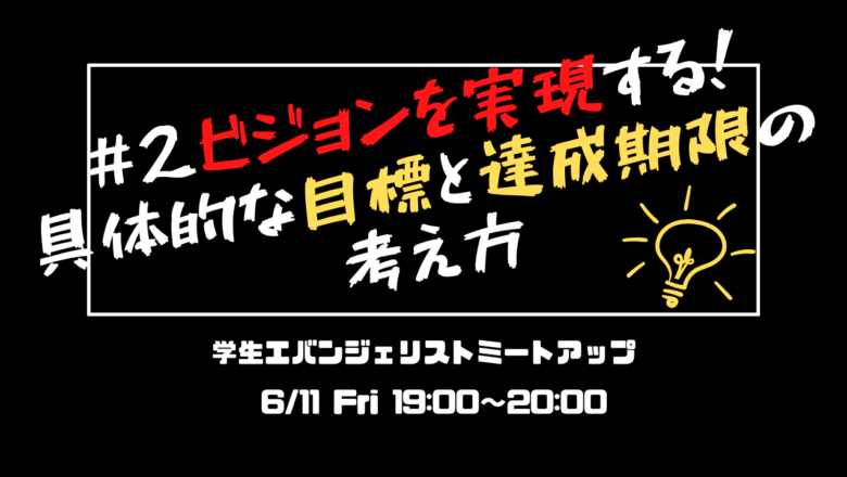 2021年6月11日(金)、「Student Evangelists MeetUp #2 〜ビジョンを実現する!具体的な目標や達成期限の考え方」を開催致しました。 本イベントは、弊法人が企画・運営する「学生エバンジェリスト養成講座」に参加する学生をはじめ、全国で主体的に活動を行う学生が、それぞれの活動に基づいて意見を交わすイベントです。 今回は、5月31日(月)に開催した「学生エバンジェリスト養成講座」で話題に上がった「タイムライン」をキーワードに、それぞれが目標に向かってどのようにプランニング