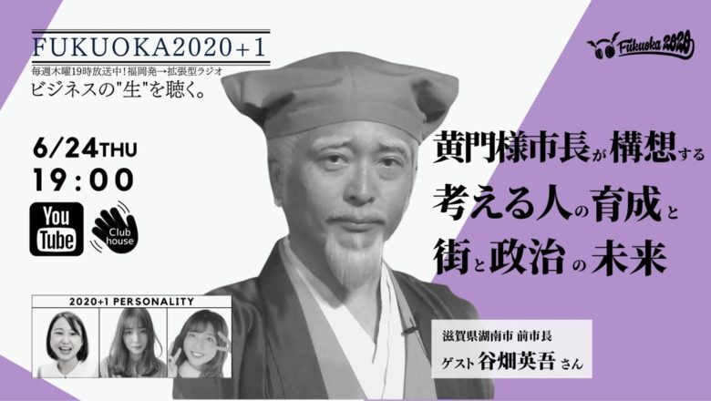 NPO法人学生ネットワークWANが、ビシップ株式会社と共同でお送りしているFMラジオ「FUKUOKA2020」。 今回のゲストは‥ 6/24(木)、第143回目の放送は、滋賀県湖南市 前市長 谷畑英吾さんと大学生パーソナリティ、りよ、ゆき、みゆが対談しました。 配信の様子はこちらからご覧いただけます。 FUKUOKA2020とは? 毎週木曜日19時から生配信!〜ビジネスの”生”を伝える拡張型ラジオ FUKUOKA2020〜FUKUOKA2020 は、「ビジネス」「地方創