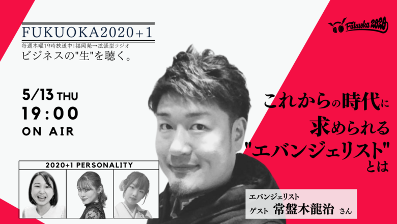 NPO法人学生ネットワークWANが、ビシップ株式会社と共同でお送りしているFMラジオ「FUKUOKA2020」。 今回のゲストは‥ 5/13(木)、第137回目の放送は、エバンジェリスト常盤木龍治さんと大学生パーソナリティ、りよ、すなお、きみこが対談しました。 テーマは、『 これからの時代に求められる”エバンジェリスト”とは 』。 配信の様子はこちらからご覧いただけます。 FUKUOKA2020とは? 毎週木曜日19時から生配信!〜ビジネスの”生”を伝える拡張型ラジオ