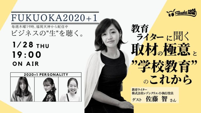 NPO法人学生ネットワークWANが、ビシップ株式会社と共同でお送りしているFMラジオ「FUKUOKA2020」。 今回のゲストは‥ 1/21、第122回目の放送は、教育ライターとしてもご活躍の株式会社レゾンクリエイト 執行役員 佐藤智さんをゲストにお迎えしました。 テーマは、「ライティングのプロに聞く取材の極意と、”教育”の可能性」。 取材・ライターのお仕事についてはもちろん、「これからの教育」について、教育に詳しい佐藤さんと現役大学生でもあるパーソナリティが対談しまし