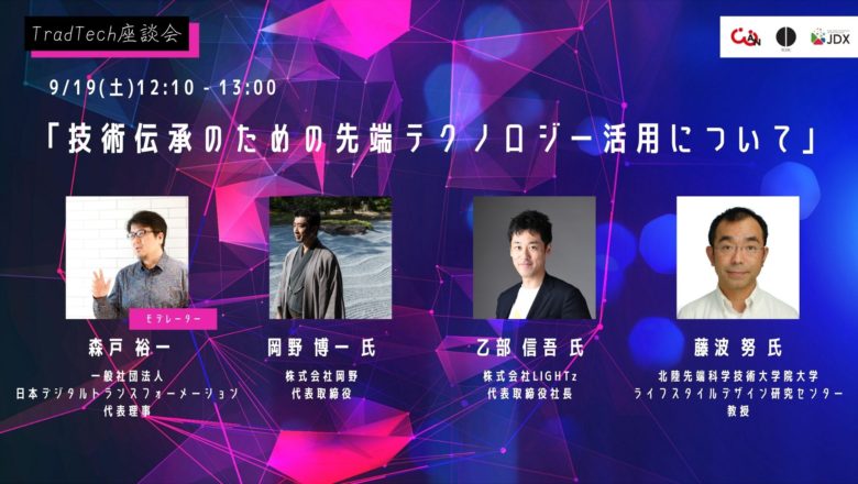 NPO法人学生ネットワークWANは、一般社団法人伝統文化デジタル協議会、一般社団法人日本デジタルトランスフォーメーション推進協会と共同で、9月19日(土)に、TradTech(伝統文化×テクノロジー)サミットを開催いたします。 ※出演者は全員リモート参加で、イベントはYouTubeライブでの配信となります。 TradTech(トラッドテック)とは、伝統文化(Traditional culture)とデジタルテクノロジー(Digital technology)を掛け合わせるという意味での造語で、最