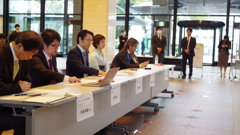 2020年3月27日、佐賀県庁にて「佐賀県限定!! 魅力発見動画コンテスト」の「オフライン+オンラインのハイブリッド型表彰式」を執り行いました。 本表彰式は、新型コロナウイルスへの対策として、関係者のみの少人数で開催し、会場の様子はYouTubeでライブ配信をしました。また、Web会議ツール「Zoom」を活用した審査員のオンライン参加など、オンラインとオフラインを組み合わせた、ハイブリットな表彰式として、佐賀県庁1Fの県民ホールで開催しました。 会場となった佐賀県庁展望ホールには、受賞自治体